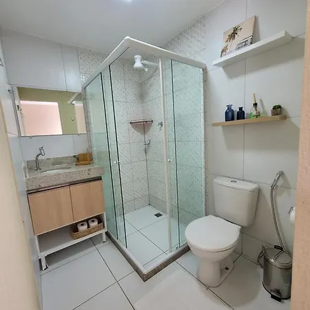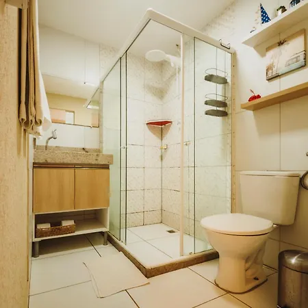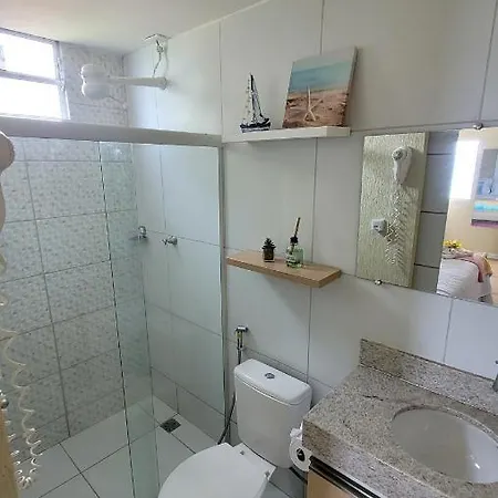 El apartamento cuenta con un patio y un balcón, y comodidades como climatizador. El Apartamento Flat Vista Mar Noronha incluye inodoro separado y ducha para tu comodidad. También encontrarás toallas.